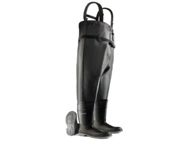 Dunlop Hip/Thigh Wader Steel Toe Boots, Black/Grey, Made In USA, Mfg#86056