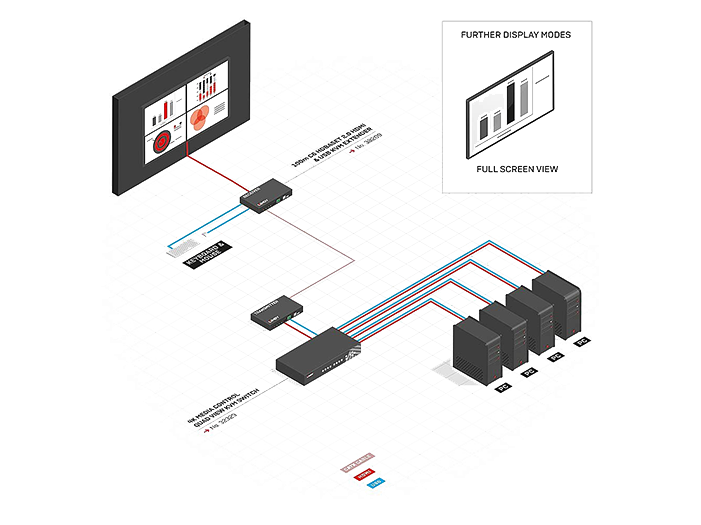 Get A QuoteThe user is able to interact with each attached device by simply moving the mouse pointer from one quadrant to another and switch to a full screen view as needed by double clicking the mouse’s scroll wheel.