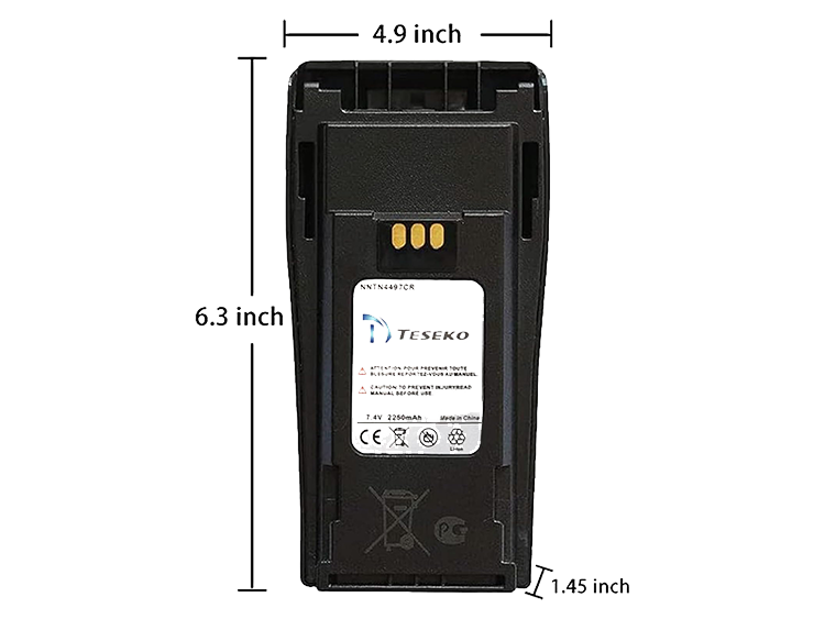 Get A QuoteThis NNTN4497DR Li-Ion 2250 mAh IP54 battery is designed to provide reliable power to ensure your radio is fully functioning at all times, rated for up to 15 hours of use. The Li-Ion 2250 mAh Battery, IP54 (NNTN4497DR, previously NNTN4497CR, NNTN4497BR, NNTN4497AR) for CP150 and CP200 Series Radios is a standard battery with Li-ion chemistry that provides longer talk time per shift and is lighter than other battery types. It also does not develop memory effect problems. This battery is rated for 14-17 hours of operation.