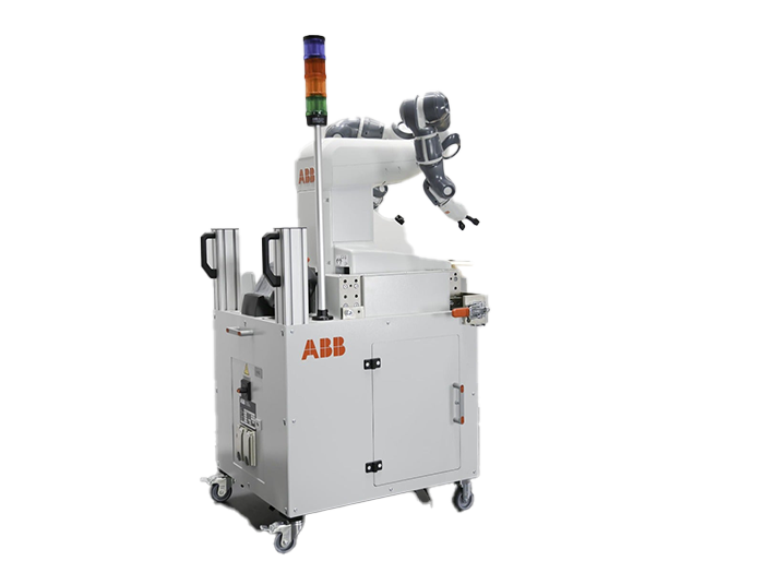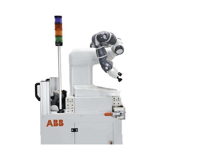 The FlexPendant is safely stored in a holder behind YuMi and might easily be used for station visualization purposes.